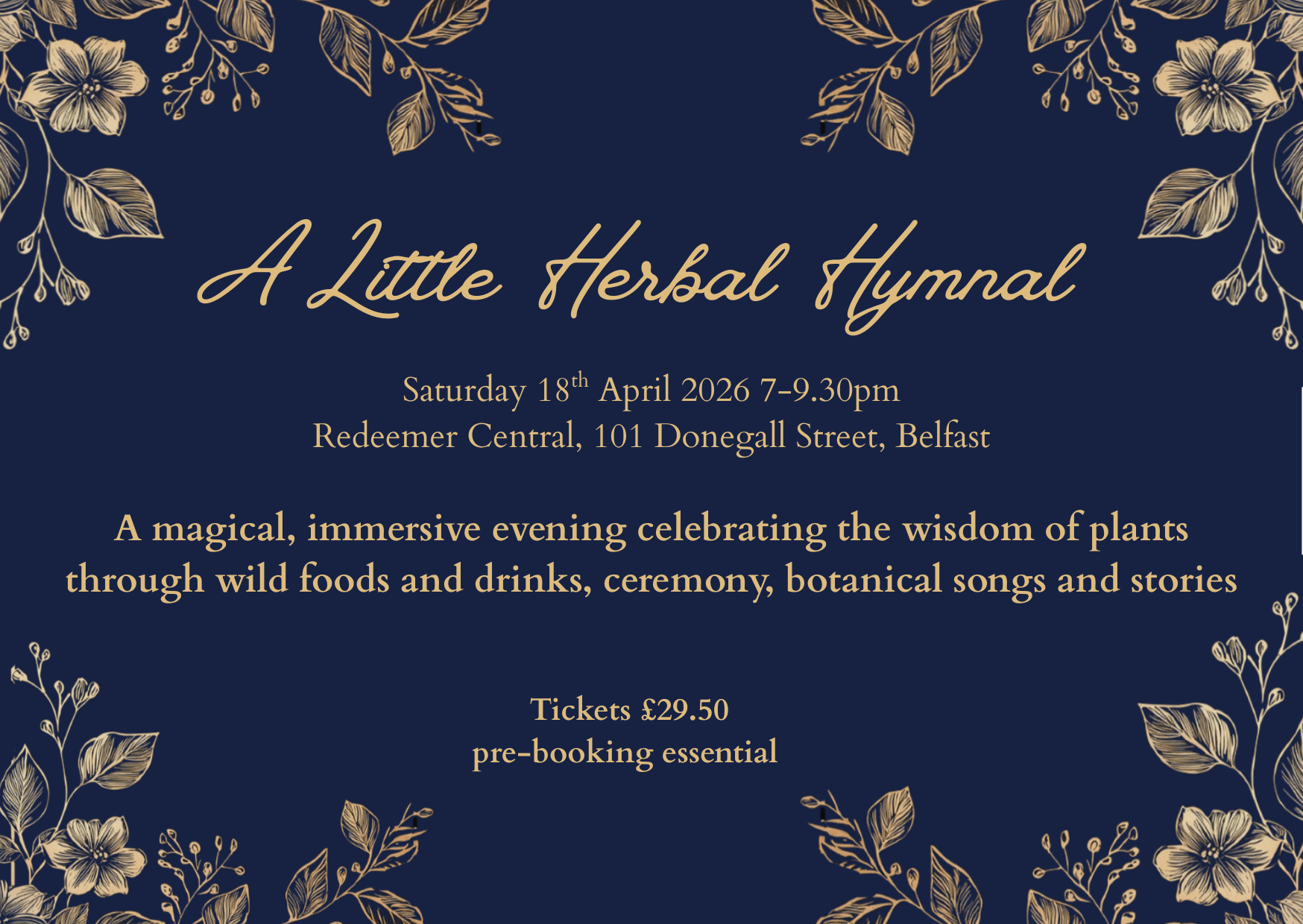 A magical, immersive evening celebrating the wisdom of plants through wild foods and drinks, ceremony, botanical songs and stories